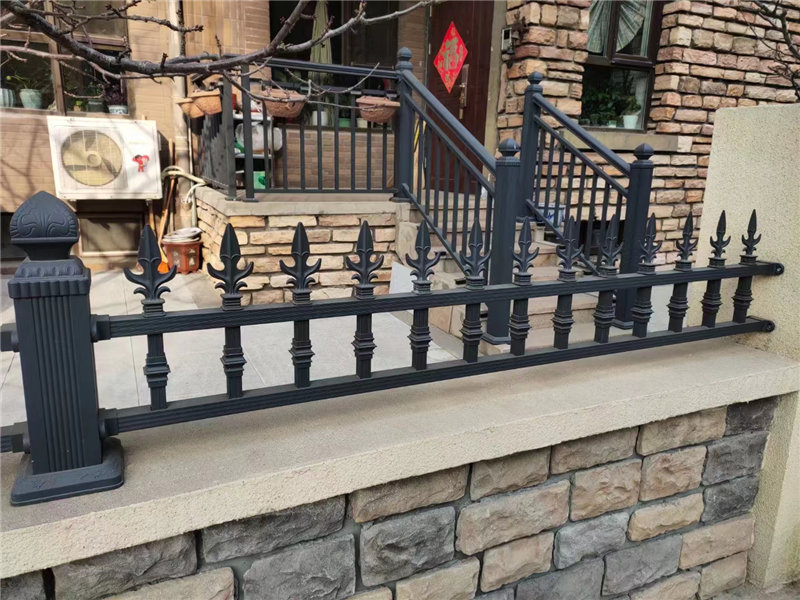 5.外观美观:多种颜色,装饰性强、光洁度好、色泽质感优,可与其他材料护栏组合使用,顶栏杆部弯曲处可防止攀爬,防盗效果明显。